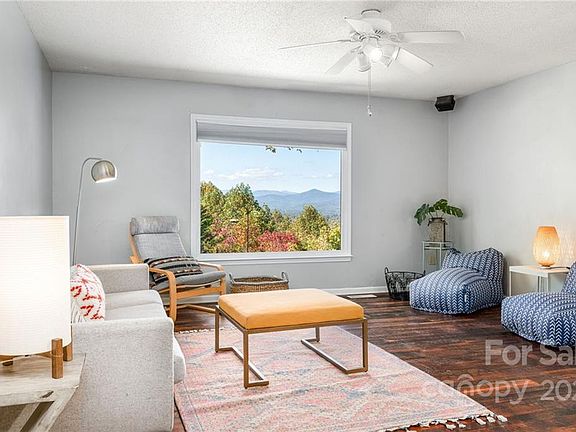 Charming one-level home in a private setting with a magnificent year-round mountain view. Serene and peaceful yet conveniently located between Hendersonville and Brevard in scenic Little River Valley where outdoor adventures are only minutes away in Dupont, Pisgah and Holmes Forests and the coming Ecusta Trail! Bright and open floor plan with two living areas, one featuring a stone gas-log fireplace. Gorgeous reclaimed wood flooring throughout the living area and bedrooms. The primary suite includes two walk-in closets and a nicely renovated bathroom featuring a soaking tub and shower. Spend mornings and evenings on the deck and enjoy the breathtaking views, peaceful setting and abundant wildlife. Lovingly landscaped yard with an amazing variety of perennials. Could be a great year-round home, vacation home or short-term rental. New HVAC in 2022, Generator 2020, Roof 2018. View easement from neighboring property grants permission to maintain view.