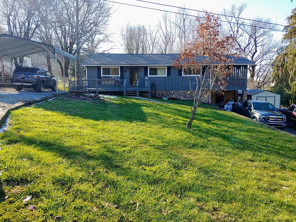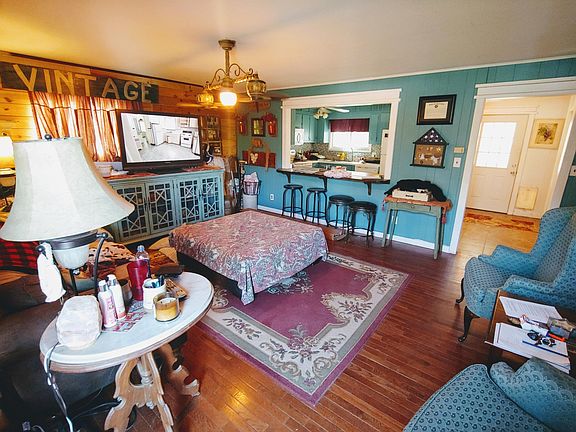 Lots of updates with this house, you won't want to let this one pass you by ! New Oak Hardwood throughout the top floor, new tile in kitchen and bathroom. A wood wall has been added to the living room and the master bedroom to give it that rustic look. New front deck and railing on the back porch as well as a new deck for the New above ground swimming pool, just installed last yr ! Heat pump is less than 5 yrs old. The upstairs bathroom was given a fresh look with a new wood wall, new tile in the shower and a sink made with a beautiful antique dresser. The master bedroom opens up to a spacious screened in porch. Downstairs you will find a 1 bedroom, 1 bath living space. The building to the back of the home stays, the building behind the pool with deck attached and building beside the house DO NOT convey.