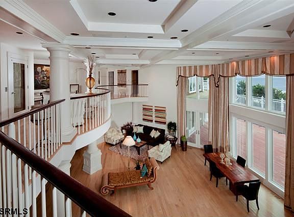 Longport fabulous direct ocean front compound (3 building lots) sits on 143 ft of ocean frontage. Open floor plan w/owner's suite on 1st fl w/private office. 8bedrms, 10 baths, home movie theater, den w/fireplace, steam room, wrap-around open kitchen w/breathtaking views, hurricane shutters, 4-car attached garage, elevator, 2 game rooms, natural cedar siding, concrete pavers, multi-zoned A/C (8 zones), upper level decks & rooftop observation deck w/panoramic views. Truly a lifestyle to enjoy the shore!