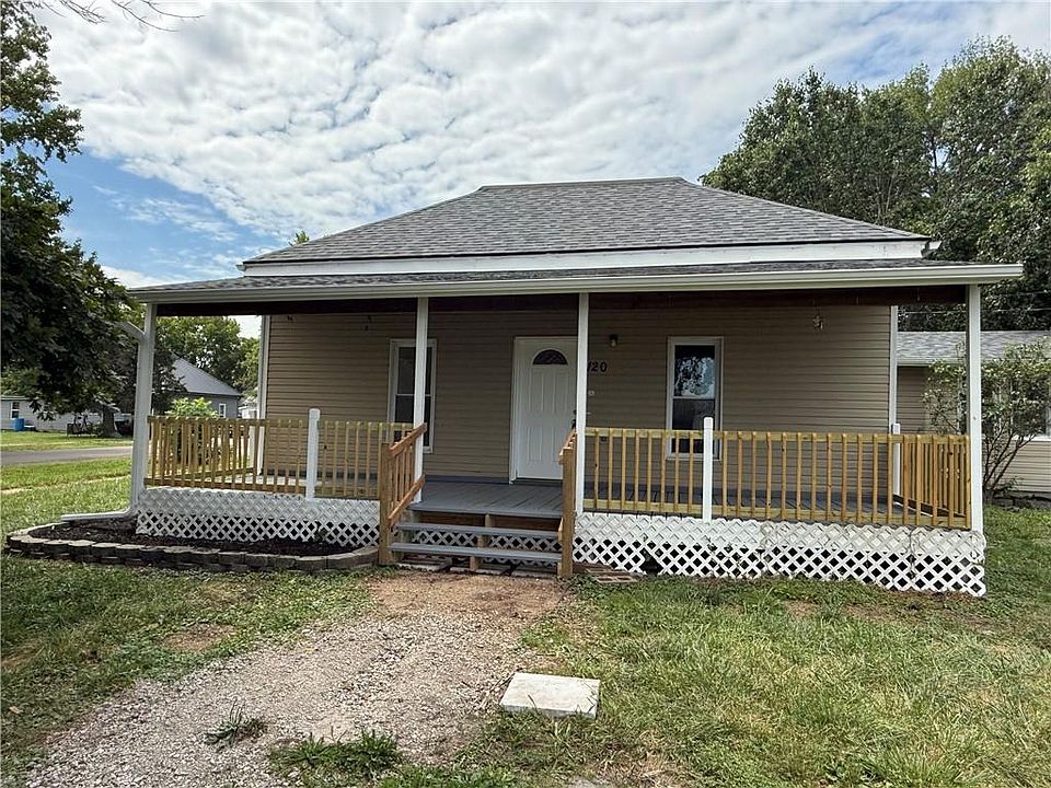 Don't miss out on this updated 3 bedroom home with 2 baths. Sit out front on the porch and enjoy the quiet of a small town. New interior paint, carpet, interior doors, ceiling fans, door hardware, stove, dishwasher and kitchen sink. Exterior improvements include new roof and gutters, 3 windows, foundation repair, new handrails and steps for the front porch. Large lot with plenty of parking. Hard to find 2 car detached garage with electricity for you automobile or workshop needs. Schedule a showing today!