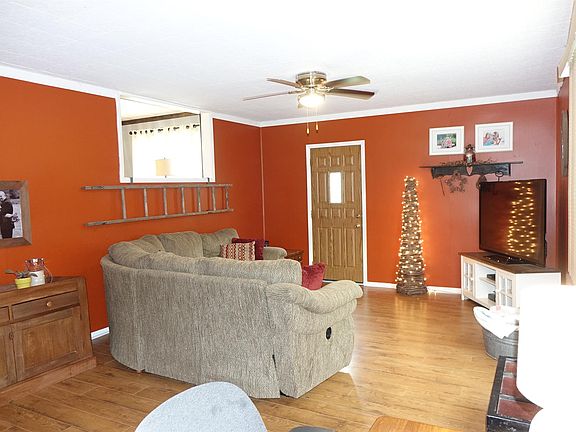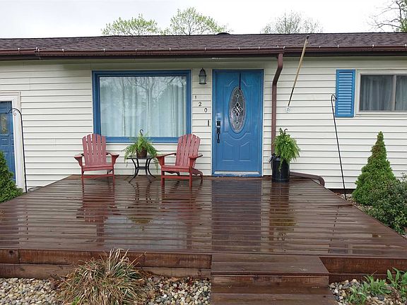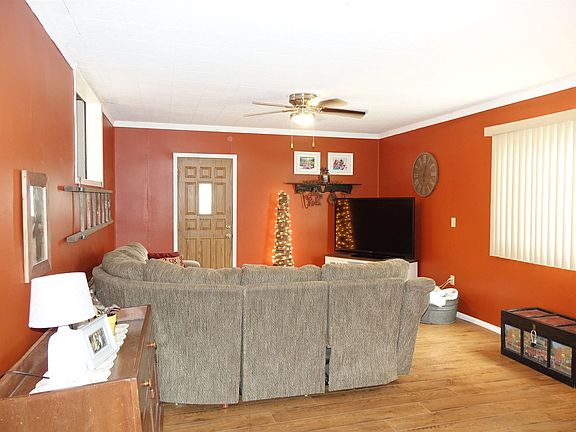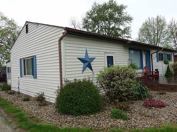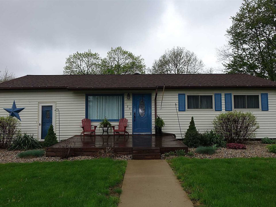 The home features 3 bedrooms and 1.5 bath. New flooring in dining room, hall way, both baths, living room and room currently used as beauty shop. Large 23 x 13 living room with gas log fireplace. Majority of windows are nice Vinyl replacement windows. Gas forced air heat and Central air. Beauty shop room has a gas wall heater and window A/C, all beauty shop equipment will be removed and a nice utility sink will be put in place of the shop sink. All new front and back decks and concrete sidewalks. 2 plus car detached garage. Behind the garage you will find a nice raised garden with strawberries and rhubarb. All plumbing updated. Roof newer but don't know the age. Refrigerator stays. The electric range, washer & dryer will be swapped out for ones coming from home they are purchasing.