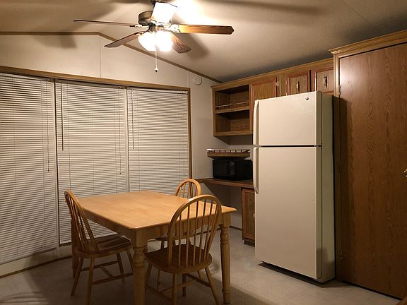 **Back on the market by no fault of the Seller. Well cared for and well maintained, immaculate 2 bedroom home on a 3 block foundation. On 2 lots with large detached garage. Volume ceilings enhance the spacious feel of the home inside. Pretty and bright eat-in kitchen with range, refrigerator, microwave, washer & dryer. Easy entry step over shower / bath tub.