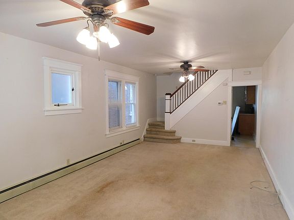 Twin home, first floor, LR, DA w/kitchen, 2nd floor has 3 BR's, 1 Bath, full unfinished basement, laundry hook-ups, oil hot water/heat, off street parking. 1 car garage. UPDATE 4/27/20, new carpets have been installed. No pets, No section 8, No smoking. Tenant pays all utilities