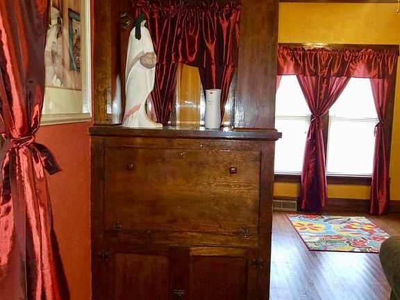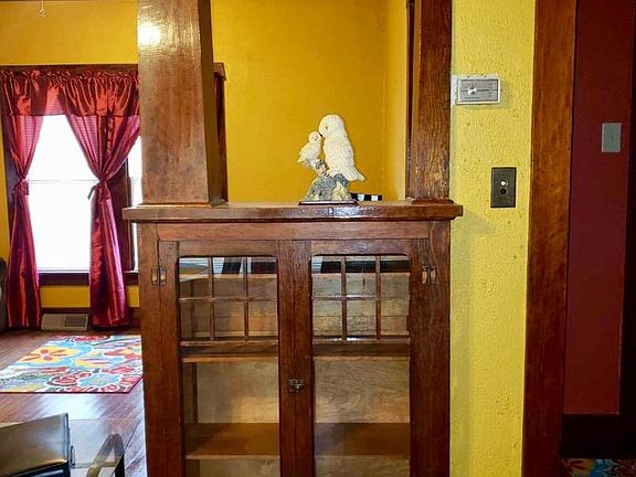 CHARMING BUNGALOW on CORNER LOT 120 S Jefferson Street Smith Center, Kansas Located at 120 S Jefferson Street in Smith Center, Kansas, this charming bungalow is on a corner lot, with a second lot for a nice yard. The home has an inviting front porch and beautiful mature shade trees. Inside the home, you will find refinished original hardwood flooring and woodwork. The cozy living room has hardwood floors and a ceiling fan/light. The living room opens into the dining room with display cabinets, one with a built-in desk area, flanking each wall of the entryway. The dining room has hardwood flooring, ceiling fan/light, and windows for natural light. The kitchen has new carpeting. The cabinets are freshly painted and have new laminate countertops. Appliances, electric stove and refrigerator, stay with sale. The bedroom has original hardwood flooring. There is a wall of built-in drawers and a closet. It has a ceiling fan and full walls of windows on east and north. The bathroom has been remodeled. It has laminate tile flooring. There is a tub/shower. The vanity is oak with laminate countertop. It has a medicine cabinet. The enclosed back porch is the laundry room and has built-in storage closet and cabinets. The home has a full unfinished basement with concrete floors and walls. The basement has two enclosed rooms with large storage areas. The large open area has a toilet and option for a shower or tub to be installed. There is another room, which is partially framed. The basement has a ventless furnace. This home is on a corner lot with an additional, open lot to the north for a large yard. A 10x7 storage shed is behind the house with a new concrete drive. Home: 1935 Sq Ft: 816 Updated electric and plumbing New concrete drive New bathroom remodel Water heater: 2018 Central heat/AC Roof: 2009 LISTING PRICE: $42,000.