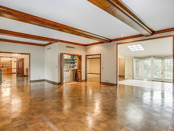 This sprawling 4 bedroom ranch home sits on a beautiful lot in The Village that displays a fantastic outdoor setting including an in-ground salt water pool, pool house, privacy fenced backyard, gazebo, built-in grill, fire pit & large patio. Manicured landscaping, a 2 car width circle driveway and beautiful flowers welcome you to the front of this full brick home with a large double door and a marble foyer. To the left of the foyer is a spacious wood floored dining room perfect for entertaining many guests. The heart of the home boasts a spacious living room with eye captivating features including a beautiful fireplace, beamed ceilings, bookcases, stainless steel wet bar, wood flooring & adjoining sun room with skylights overlooking the park like backyard. The fully applianced kitchen is great for the cook in your home with brick flooring, Sub-Zero refrigerator, double ovens, trash compactor, soft close drawers, island cabinet with eating bar, ice maker and veggie sink, window over the sink & a large eating space/family room with a brick fireplace. The master suite features separate his & her private baths with huge walk-in closets and built-in dressers. The women's bath has a tub/shower combo and the men's bath has a walk-in shower. Another family room with a fireplace, 3 additional bedrooms with private baths, (2 bedrooms along the north make for a great mother-in-law suite with a kitchenette), huge laundry room with sink & 2 guests powder baths complete the main level. Note that all the bedrooms open up to the backyard pool and boast fantastic views. Walnut woodwork brought from California can be seen throughout the house! Not only does this home have an attached oversized 2 car garage, but an additional 3 car attached covered carport. The unfinished basement has plenty of storage, 1/2 bath and a concrete lighted crawl space. Too many luxurious amenities to name; you must see this home!!