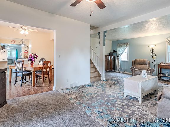 Introducing a delightful 3-bedroom, 1.5-bath property located just a short stroll from the charming downtown of Rockford. Step into the open floorplan, featuring a spacious living room and a welcoming family room that leads to a beautifully landscaped backyard adorned with a variety of flower beds. The kitchen boasts an open layout, complete with a cooking island and a bay window. On the main level, you'll find the convenience of laundry facilities and a full bathroom, while the upper level houses 3 inviting bedrooms and a well-appointed half bathroom. A generous front porch provides the perfect spot to soak in the neighborhood atmosphere. Additionally, the property features a 2.5-stall attached garage with an extra garage door at the back, ensuring ample storage. Offers Due 6/11 12:00pm