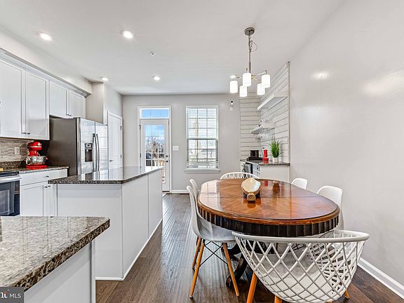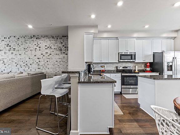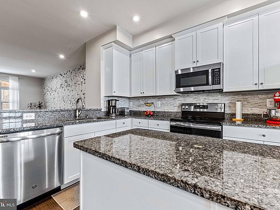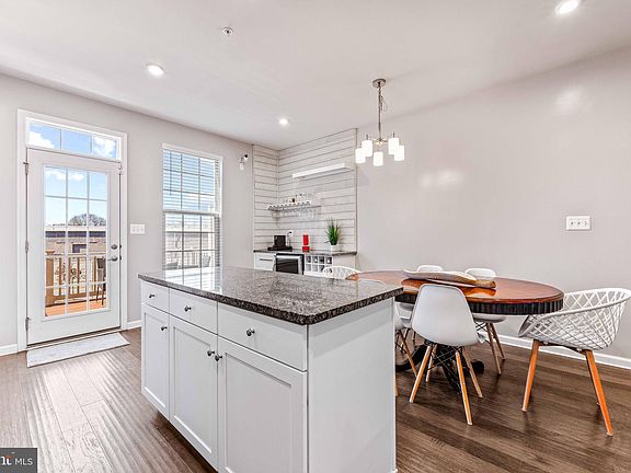 Distinctive newer construction townhome in Oldham Crossing. The main entry is greeted with a flex space that can be used as a recreation room or office complete with a half bath. The sun soaked main level is ideal for entertaining with open sight lines from the living room to kitchen and dining area with access to the oversized rear composite deck! Gleaming hardwood floors, 9 foot ceilings, 42 inch cabinets, granite counters, S/S appliances, breakfast bar, stone backsplash, and huge center island. The custom living area has been decorated with detailed shiplap, faux brick, built-in fireplace, and premier paint. Upstairs offers a massive primary bedroom, his and hers closets, en-suite bathroom with dual vanity sinks and dual headed shower. Through the hall you'll find the convenient laundry, Full bathroom with soaking tub/shower and spacious bedroom with a full closet. The oversized garage offers tons of extra storage space, epoxy floors, and a full size driveway that offer a generous 2nd car parking spot. The home is beautifully landscaped and meticulously maintained. The community has a dog park, tot lot, and is conveniently located near commuter routes 895,95, and Canton Crossing restaurants and shops.