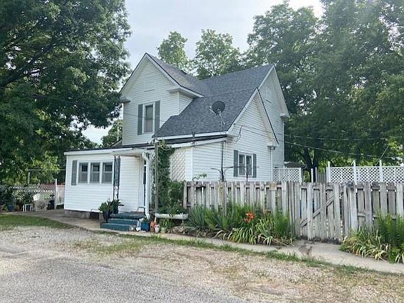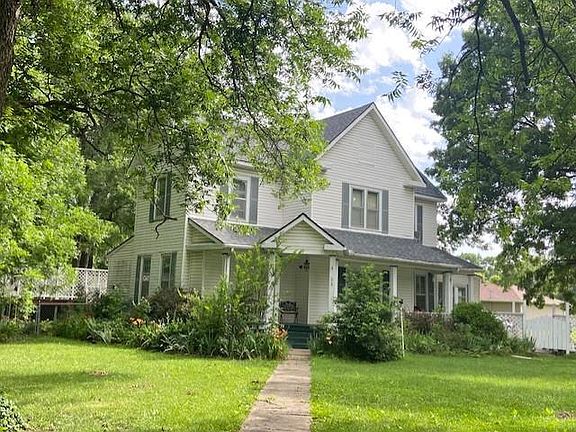 Beautiful home on 6 lots with a welcoming wrap around front porch. Four or five bedrooms, 2 full and one half baths, updated kitchen Garage/shop and two other outbuildings included. Above ground pool NEW cover with a deck around it and beautiful flowers and sitting areas. There is also a functioning well (NEW pump) that works well for watering flowers. This well maintained and charming property is a must see!