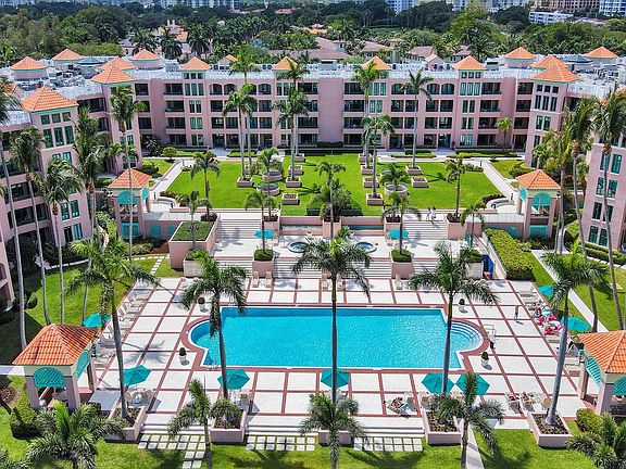 LOCATION, LOCATION, LOCATION!! This convertible two bedroom split floor plan feels like a private enclave with no attached neighbors on the grounds of the Boca Resort! Full service building with 24 hour security, amenities galore and immaculately maintained. This Southwest facing unit with lush, tropical, magnificent sunset views feels spacious and open with access to the large balcony from all rooms. Both Bathrooms have been nicely updated and the primary has an extra large artisanal walk in shower. Specialty stained wood ceiling adds a warm feel with recessed lighting throughout. Short stroll to shopping, entertainment and restaurants, the property is situated on the intracoastal and close to the beach, all in the heart of East Boca.