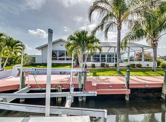 LOCATION LOCATION FOR BOATERS/FISHING !! Exceptional 3Bed/2 1/2Ba Gulf Access, Pool & Spa OYSTER BAY BUILT Home. Western Exposure, minutes by boat to Matlacha Pass and open waters of Pine Island Sound and Gulf of Mexico. Large Kitchen, upgrades include stainless steel appliances, quartz countertops, lots of cabinets and an Island, Roll down electric storm panels on back of home, 300 gal. R/O system, OVERSIZED garage with Epoxy garage floor and tons of extra Storage cabinets. Large Dock with captains walk with newer Composite decking and 18k lift, Metal roof and A/C new in 2016. Master bathroom has separate walk in closets, double sinks, large soaking tub, and separate shower. The kitchen is open and bright with lots of breath taking views, breakfast nook, and pass through to the pool. Enjoy the Large Lanai facing your Gulf Access canal while relaxing in the Heated pool/spa with convenient pool bath and Outdoor Kitchen !! Home has a separate DR and LR with a Huge Family Room with large window for canal view. Home has so much to offer, see virtual tour and attachments on floor plan, shows 2314 sq ft living and home info attachment. House comes Furnished, Great Seasonal Rental.