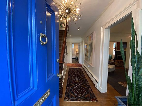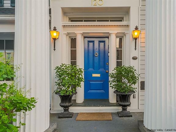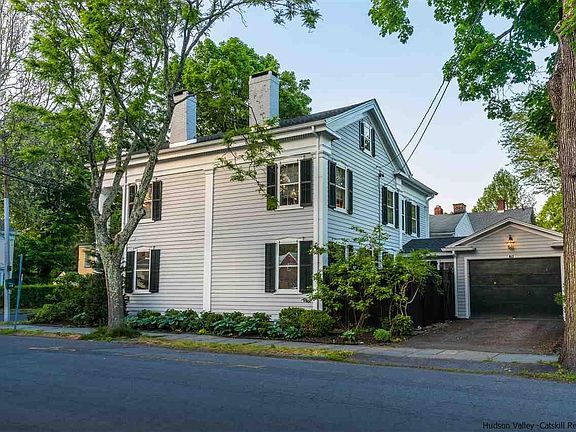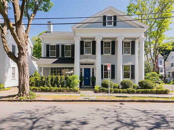 Stunning, walkable and move-in ready: This Greek Revival is one of the most iconic homes in Uptown Kingston, now renovated and restored to the highest standards of design and function. Originally built in 1848, with salvaged columns from a local church added in 1850, the house still retains its traditional graciousness, with high ceilings, ornate moldings and trim, dual parlors, three fireplaces, front and back staircases, and hardwood floors throughout. Today, the package is complete with fully renovated bathrooms, including a half bath on the ground floor, a new gourmet kitchen with quartz countertops and stainless-steel appliances, upgraded electrical and lighting, central air-conditioning, security alarms and other new systems, all the work of some of the Hudson Valley's premier construction professionals. Roof is only 2 years old and a new natural-gas boiler was installed in January. Additional upgrades include custom and easy-to-remove wooden storm windows with protective UV-filtered glass. A private fenced courtyard is the only yard maintenance required. This is a rare blend of exceptional historic character with the very best of modern technology and convenience, all within a quick walk to the stores, galleries and other attractions that have made Uptown Kingston the hottest neighborhood in the Hudson Valley. (Complete virtual tour available on request.)
