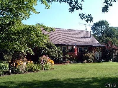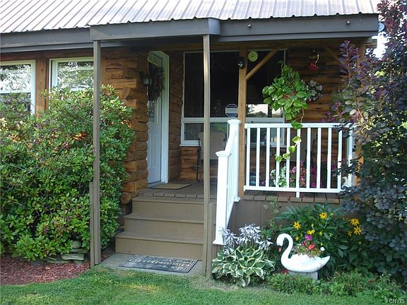 Nature Lover's Paradise! Outstanding Quality Log Home offers open concept floor plan,nice kitchen with hickory cabinets,dining area & living room with cozy pellet stove. On the main level, Master Bedroom with Master bath & Jacuzzi corner tub, 2nd bedroom is being used as an exercise room,2nd full bathroom,then take the spiral staircase leading to an open loft area with additional storage space or a 3rd bedroom. Also offers front enclosed porch,office area,large all season heated enclosed back porch & back deck for entertaining. Detached 2 car garage, 2nd garage/workshop,14x36 storage shed,mature trees,landscaped beautiful gardens,3.0 private acres, with spacious 1 1/2 acre fenced yard,pond,small stream & much more! Only 1 mile to Sandy Pond, easy commute to Oswego,Syracuse or Watertown!