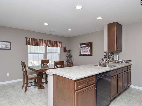 - Kitchen: Bar, Counter Tops-Formica, Eat In, Cabinets-Stained, Floors-Vinyl, Backsplash-Tiled