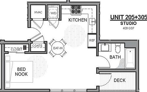 - Total interior livable area: 409 sqft