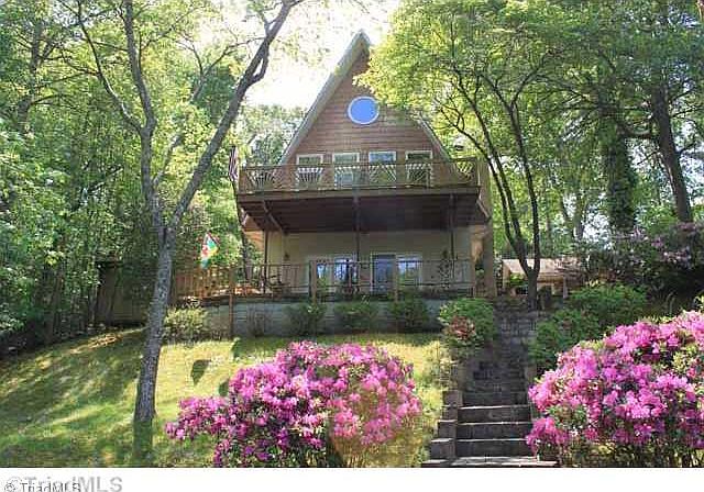 Charming A-Frame in quiet cove just off the main channel. 2-bedrooms+loft. Boathouse with sundeck. Large open deck and covered patio. Nice size loft, perfect for bedroom furniture. Storage buildings. Lovely views from the living/dining room. Cozy loft and nice basement den.