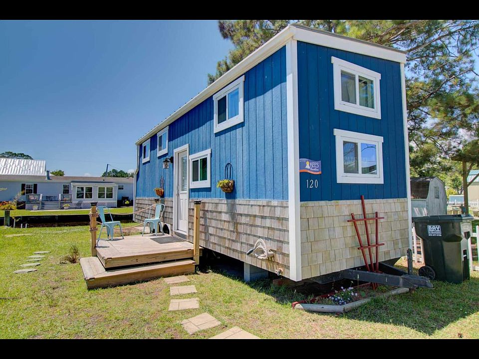 Waterfront tiny house living on the canal! Incredible sound views. Semi-furnished (couch, table, bed). Solid surface countertops, wood ceiling beams, and clean white cabinets give the kitchen an urban cottage feel. Luxury vinyl plank flooring and ship lap walls in the living area. TWO lofts! One loft is a cozy bedroom with dresser while the other loft can be used as storage, a workspace, or a place for guests. Both lofts have tongue and groove wood ceilings planks and yoga mat-style flooring for comfort and easy clean-up. Spacious bathroom with stackable washer/dryer. Very unique design, built with a metal roof, smart siding and anderson windows. Located in a close-knit, golf-cart friendly community with locally owned bar/restaurant within walking distance. Close to shopping, freeway, and outer banks. There's even room to park your boat! Semi furnished (couch, table, bed). Owner pays trash. Renter responsible for water and electricity. No smoking. Deposit and first month's rent due at lease signing. Pets welcome. Pet deposit is an additional $450 (per pet). No more than 2 pets.