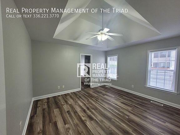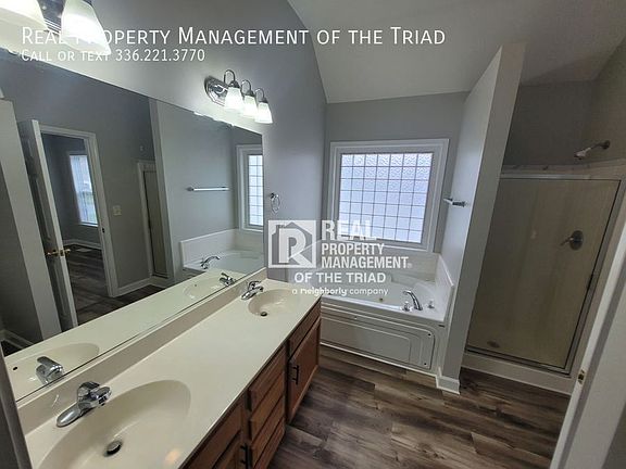 Newly Renovated One level 3 bedroom and 2 bathroom home with a 2 car garage just off Kernersville Rd. Leaded glass front door, vaulted ceilings, ceiling fans, FP with gas logs in living room. New LVP Flooring thruought. Spacious kitchen and breakfast area has chair rail & crown molding. The primary bedroom has tray ceiling & ceiling fan.Primary bath features double sinks, separate shower, jetted tub & closet. Front bedroom has atrium window & vaulted ceilings. Appliances: Fridge, stove, dishwasher, and built-in microwave. Recently painted deck overlooking nice private yard with outbuilding. 24 Month Lease, Security Deposit and Lease Administration fee applies. This home is security deposit free for qualified applicants via Obligo! Copy and paste the following link in your web browser for convenient scheduling: https showmojo. AVOID RENTAL SCAMS: Real Property Management is a licensed Real Estate Agency that exclusively markets and represents this listing. We do not advertise on Craigslist. We would never ask you to wire money, request funds through a payment app for initial rent, deposits, or take the key after your showing to move-in. Fireplace With Gas Logs In Living Room Jetted Tub None Included Outbuilding Painted Deck Private Back Yard Two Car Garage Vaulted Ceilings