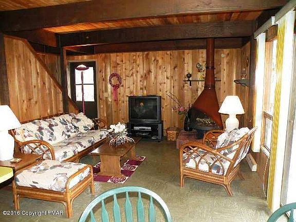 True mountain Chalet with cedar panel, free standing fireplace in living room, four bedrooms, two full baths and an extra lot included in sale for more privacy. Enjoy your wrap-around deck off the living area and the upper deck off the bedroom. What a great place to have your morning coffee! This house has been well taken care of as you will see.