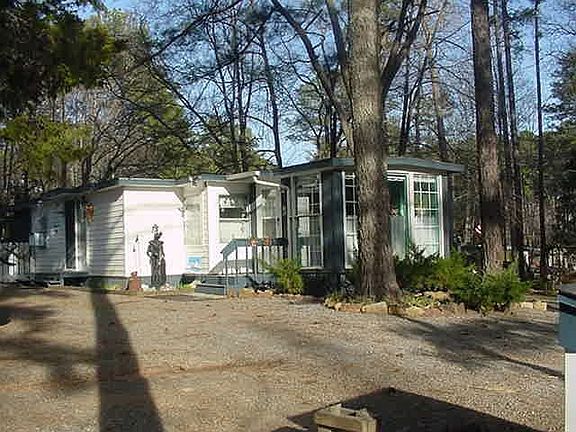Charming single wide with site built additions in a subdivision that has a clubhouse, swimming pool and direct lake access via two boat ramps. Situated on two lots with the home on one lot and the greenhouse, garden shed, fenced garden and a camper (for guests) on the other lot. This home has well water but county hookup has been paid and only needs a meter installed to utilize the county water system. Nice outdoor covered dining/picnic area overlooking the gardens. Plenty of storage and fenced garden area. Bolted in Gun Cabinet does not convey. There are a total of five window AC units that will convey. Site built additions range in age from 2003 to 2008. Sellers currently heat with wood.