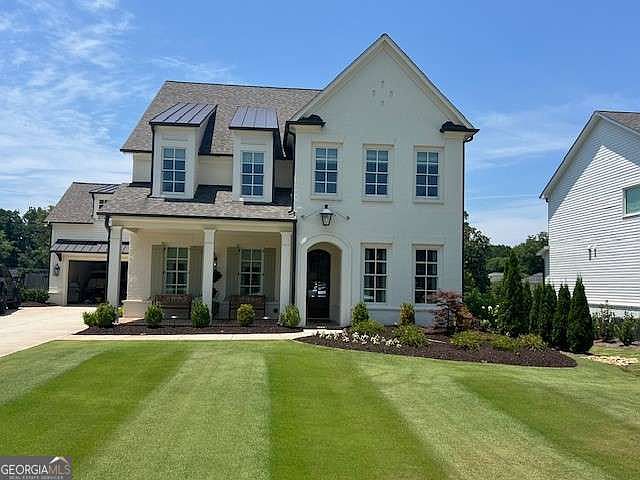 Like new 5 bedroom/4.5 bathroom privately built custom home epitomizes the pinnacle of comfort and modern living, located in the highly desirable Buford City School district. Combining innovative design with impeccable craftsmanship, every detail of this residence has been thoughtfully curated to create a sanctuary of comfort and elegance. The main level boasts 10-foot ceilings with 8-foot doors. Spacious family room with built-in cabinets, coffered ceilings, and brick fireplace. Separate oversized dining room, additional flex room/study, and powder room. The gourmet chef's kitchen with a spacious eat-in luxury island, quartz countertops, upper cabinets that extend to the ceiling, custom walk-in pantry and stainless-steel appliances. Complemented by an adjacent butler's pantry with beverage drawers, cozy desk/workstation off the kitchen and mud room with enclosed lockers. The master suite, a true centerpiece, is sure to delight with a lavish spa-style bathroom that includes a luxurious soaking tub, walk-in shower, with a quartz vanity and cabinet tower. The massive walk-in closet was elegantly designed with a custom closet system and built-in make-up vanity. The upper level includes a media room, three additional bedrooms offering ample space and comfort, designed to provide a haven of tranquility. The Jack-n-Jill bath separates the two bedrooms, along with an en-suite bath in the third bedroom. The laundry room is equipped with a washing sink, upper cabinets, and a folding station. The outdoor space is equally impressive, featuring a professionally landscaped level lot, privacy fence, and irrigation system. The extended rear covered porch with fireplace, indoor/outdoor speaker system, provides the ideal setting for alfresco dining and offers endless possibilities for year-round outdoor activities and relaxation. Perfectly situated in the heart of Buford, convenient to local dining, shopping, schools, and Lake Lanier. Do not miss the opportunity to make this dream home yours!
