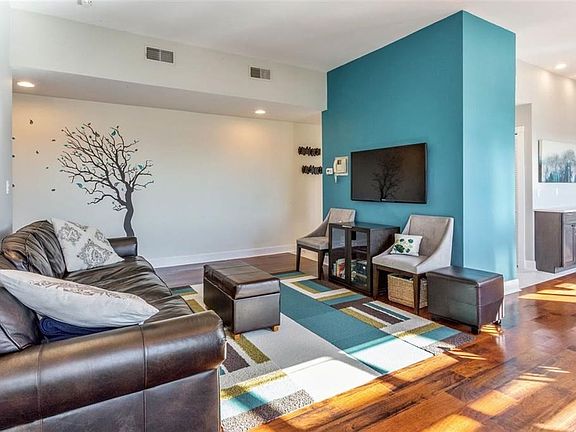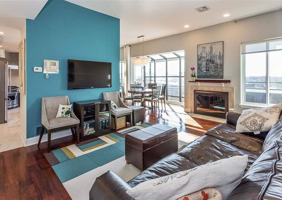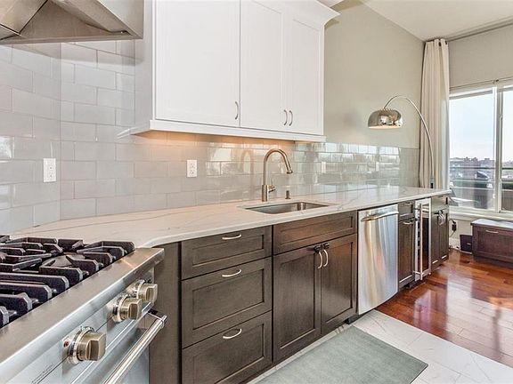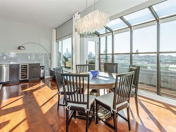 Stunning best describes this south facing penthouse unit. This 2 Bedroom/2 Bathroom offers amazing NYC views from the Living room and massive balcony that spans the whole length of the unit. The building has a full sized gym, 1 over-sized garage parking space, and an elevator. Over 1300 Sq ft of living space gives the unit amazing versatility for entertaining and enjoying the peaceful setting of this charming neighborhood. Meticulously maintained and tastefully renovated, the unit has a Chef's kitchen with Viking appliances and a vented hood. Fully equipped with stylish cabinetry, luxury tiles and flooring, the kitchen leads to a large dining area. Continue to the over-sized living room with working fireplace and unobstructed views of the city. Gorgeous master suite, tons of closet space, and a fabulously renovated en-suite bathroom including luxury spa like shower, double vanity and ample storage complete this private oasis. Short walk to River View Park, farmers markets, community Jazz, gardening, children's playground, gourmet coffee shop , jump on the bus to NYC or walk to Congress St Light-rail Station.