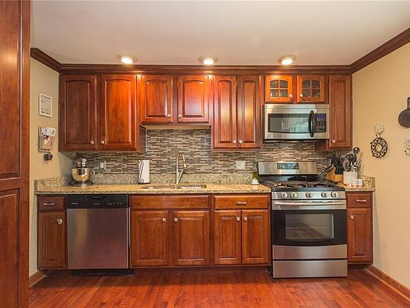 Beautifully updated inside - eye catching curb appeal outside! A pillared portico lends classic beauty & style to this updated 3-bedroom 3 bath home which is located in a friendly neighborhood where leisurely walks & bicycle rides are easily enjoyed! The home's well-maintained exterior is the perfect complement to the tastefully updated interior which features a professionally renovated kitchen boasting granite counter tops, HW floors, SS appliances, breakfast bar with seating, cherry cabinets & mosaic glass backsplash - pendent & recess lighting add illumination and trendy flair to the room. The main floor living area enjoys a soft calming color palette & has unobstructed flow between the kitchen, diningroom & livingroom lending ease in social gatherings - beautiful hardwood floors & crown molding give the rooms a polished finish. The master bedroom features an in-suite bath offering privacy while a wall of closets offer storage. A rustic stone fireplace lends warmth & character to the lower level familyroom while hardwood floors give the room a fresh clean look - a full bath completes the lower level space. This home offers many options for outdoor enjoyment - fresh air dining on the covered brick patio, star gazing by a campfire (fire pit included) or relaxing pool side - there's plenty of summertime to appreciate the pools refreshing effects! An integrated 2 car garage allows sheltered entrance during rainy days! Big ticket mechanical items also updated - roof in 2012, furnace & AC in 2006 but a home warranty is offered for peace of mind! Located 5 minutes from I376 in the heart of Center Twp this home has quick easy access to all amenities including dining, shopping & a 20 minute drive to the PGH airport. Come see all this home has to offer, inside & out!