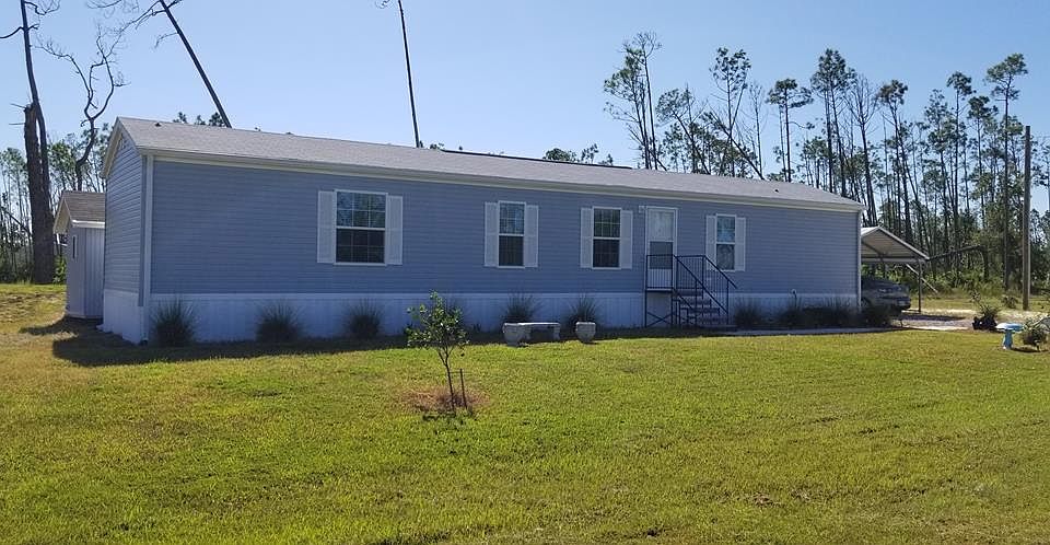 Adorable, ready to move in 3 bedroom, 2 bath mobile home on half an acre within 4 miles to the white sandy beaches of Mexico Beach and St. Joe Beach. Beautifully decorated and furnished. Detached carport with workshop as well as an 8x8 shed for storage or gardening. Home features a kitchen island (bar stools included), whirlpool appliances. Refrigerator with ice maker, built in microwave, electric stove, dishwasher as well as washer and dryer. Split floor plan. Master bedroom with bathroom suite with walk in closet. Nestled in the quiet Sunshine subdivision. Home did not suffer any damage from Hurricane Michael. Double paned windows & well insulated. This home is a must see!