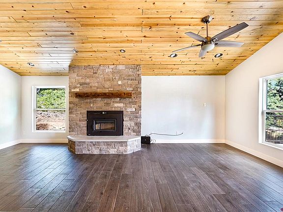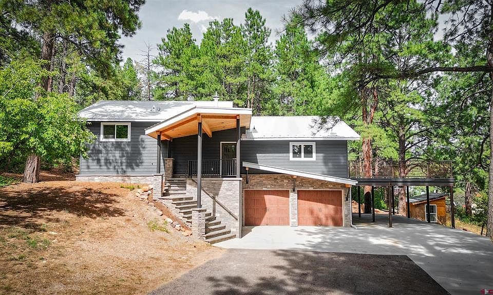 This home has 4 legally permitted bedrooms + office and is truly "move-in ready" making it a rare opportunity to own a fully renovated property that sits on a forested 1.4 acre lot in the Florida River Estates Subdivision. As you enter the home from the brand new stone encased steps and covered front porch, you're greeted by the vaulted entryway accentuated by the tongue and groove ceilings that run throughout the great room. The foyer opens to the living area with stone-wall fireplace and open kitchen concept. The kitchen is well appointed with quartz countertops, large island, stainless appliances, and custom cabinetry. The kitchen also boasts an 8-burner range/oven with an in-wall pot filler, walk-in pantry, and sliding door with access to the enormous steel-supported deck overlooking the eastern Florida River Valley mountains... an amazing setting to watch the evening alpenglow or enjoy a morning cup of coffee. As you walk up the steps to the upper level, there are two bedrooms that share a hallway bathroom and a third bedroom with en-suite bathroom which have all been updated with quartz counters and tiled showers. The lower level hosts the primary suite and an office. The primary ensuite bath has quartz countertops with double vanity, tiled shower with custom glass door, and wrap-around closet. In addition to the home's primary heat source of hydronic baseboard, all bedrooms have mini-split AC/heat units and the primary bedroom, living room, and kitchen all have in-floor radiant heating. The in-floor radiant heat was cemented in on the main level providing for high efficiency heating in the cold winter months. If that isn't enough, other updates throughout the home include but are not limited to re-siding the entire home with smart siding, exterior/interior paint, under deck sheet metal roofing for added dry storage, all new flooring, reconfigured kitchen, new boiler, completely rebuilt fireplace, and new eyebrow roofing for proper shedding of snow. The owner also replaced the gas line from the tank to the home, installed a 220 electrical panel on the huge concrete back patio for easy hot tub connection, installed a new engineered septic system (approved up to 5 bedrooms allowing for one more bedroom so you can add an ADU in the future) and installed a whole house water filter. The home is located within 11 minutes to downtown and the road is paved and maintained by the County. This home is a low-key luxury property in the pines and anyone looking for a new home with privacy and serenity should come take a look.