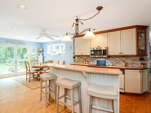Welcome home to this charming Cape that has been lovingly cared for & continuously updated by the original owners. The kitchen is the heart of this home with a gas fireplace and large dining area.The front to back living room boasts the second gas fireplace and is an inviting space for gatherings or a quiet night at home.The dining room is perfectly located off the kitchen and living room providing the ideal floor plan. Full bathroom w laundry rounds out the first floor. Upstairs are three generously sized bedrooms. The primary bedroom has direct access to the beautifully updated full bathroom. The lower level is currently used as a family room and home office but could also be a gym or media room.The slider off the kitchen brings you on to a fabulous deck which steps down to a lovely patio surrounded by a lush lawn and gorgeous plantings. The expansive backyard is great for entertaining or just relaxing and offers a putting green for golf enthusiasts. All this plus three car garage!