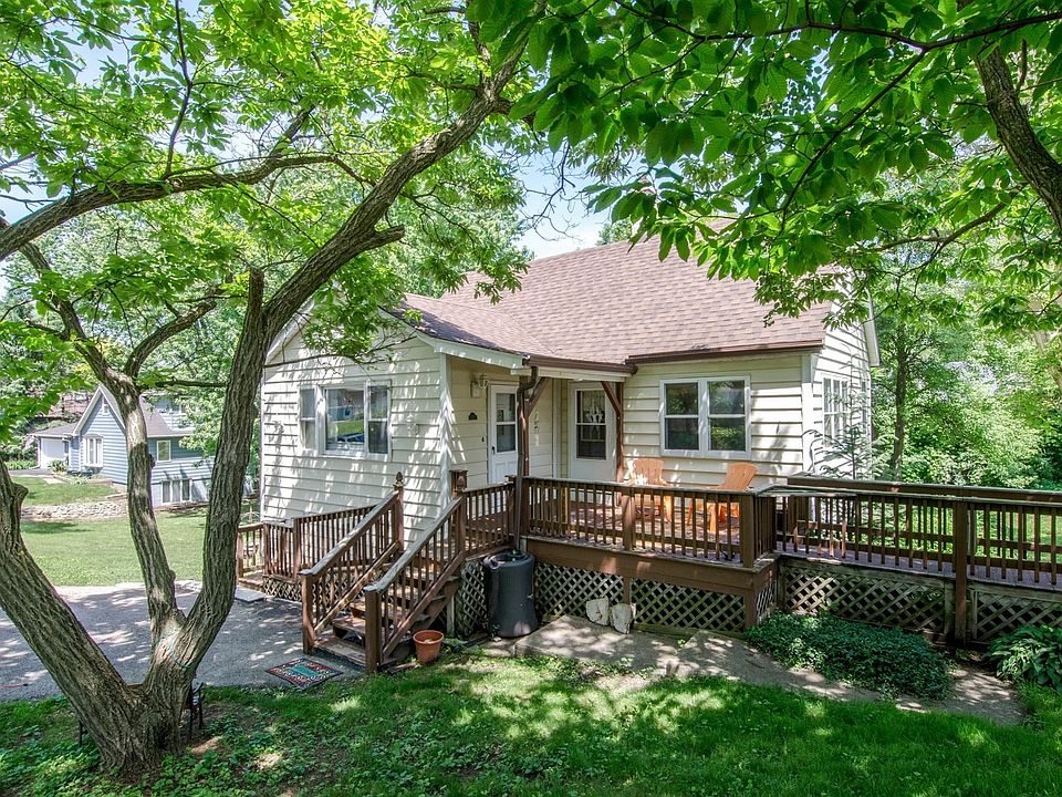 Adorable home just blocks from the lake! Great location on a corner lot with extra lot for expansion. Shaded front deck - great for porch sitting! Beautifully remodeled bath with barn door and rain shower head. Large eat-in kitchen with lots of storage. Freshly painted. Full walk-out basement with plenty of room for storage. MOTIVATED SELLER Ride-on mower included!