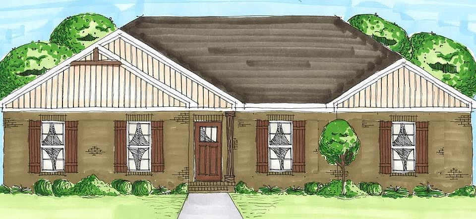 This new construction home in Mockingbird Hill S/D in Wicksburg has 4 BRS, 2 baths with 2117 SF. The color rendering shown is a representation of the home and is not a depiction of the finished home.