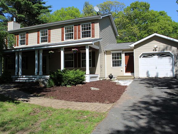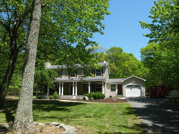 Looking for a home that is just like new construction without the high price tag? Look no further. This beautiful southern style completely renovated 4 bedroom, 2 and a half bath Colonial home is in beautiful Pocono Mt. Woodland Lakes. This lovely home has a covered rocking chair porch complete with ceiling fans. Lots of privacy to sit and rock and enjoy nature and tranquil woods.Inside features a brand new eat-in kitchen, all new appliances, hardwood floors, formal dining room with french doors, formal living room, plus family room, mudroom and garage. Upstairs features laundry, master suite and three more bedrooms and a bath. This beautiful home has a lot of natural light, crown moldings and lots of character and charming extras. A must see. Easy commute to I84 or NJ.
