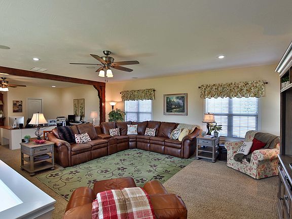 You must see this updated brick home with almost 4,000 sq ft on one level sitting on 3.67 acres. North of Ozark, it is only 4 miles from NN and Hwy 60 just minutes to medical mile. As you enter the home you will notice the tall ceilings in the foyer, formal dining room and large living room all with hand scraped hardwood floors. The large kitchen features wood floors, a large corner pantry, new granite counters and tile backsplash, cream painted solid custom maple cabinets with lower maple pullout drawers, and Kohler custom sink and faucet. The family room/office/game room/wet bar is almost 1,000 sq ft of amazing space. Below is a basement which is perfect for a media room or exercise room or office and a great storm shelter. The master bedroom features tray ceilings and his/her walk in closets. Brand new Master Bath from 2018, with large custom shower with seamless glass surround and his and her vanities with carrara marble. The split bedroom layout features 3 bedrooms with walk in closets and new carpet. A full bath and plus a large jack and jill bathroom round out this side of the house. Amazing laundry room filled with custom maple shelves, folding table, built in iron and a large sink. A 2018 screened in patio plus a new cement patio featuring a large bubbly Sundance Spa. A beautiful yard with mature trees and new front landscaping.