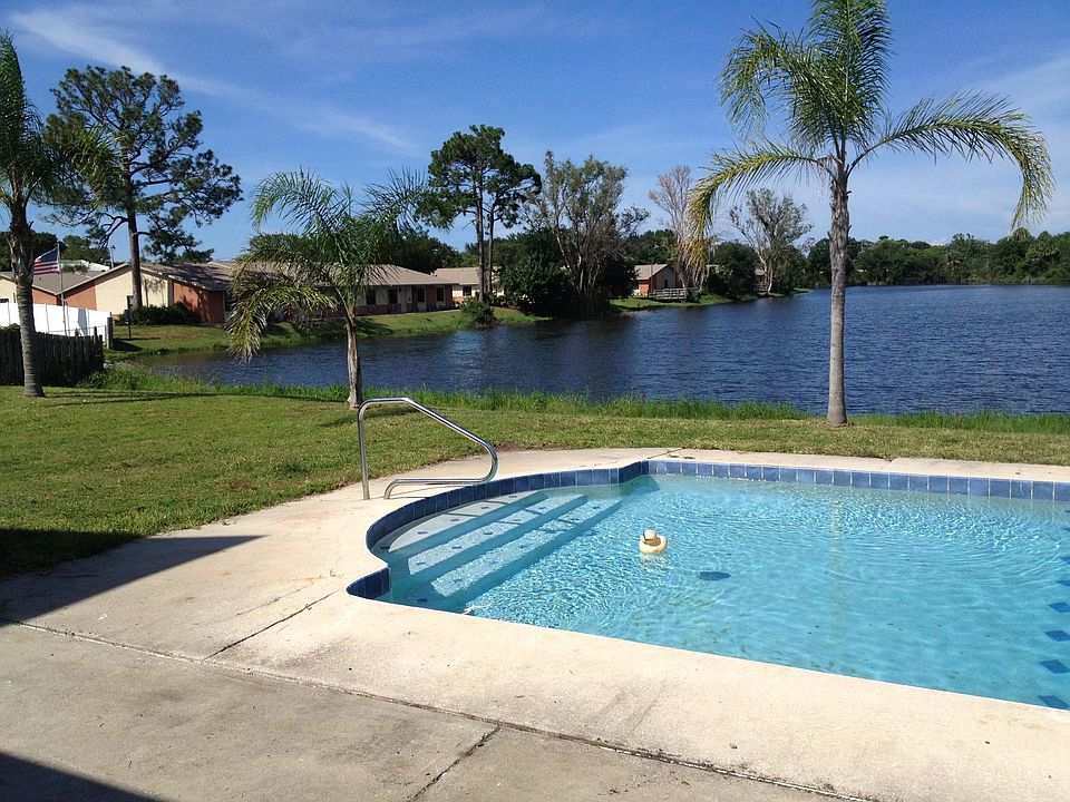 Complete new renovation! Tile throughout, sunken living room with fireplace, upper level master suite with huge closets and jet tub. Oversize garage with space for 3 cars plus a workshop! In ground pool, on small lake in a quiet subdivision convenient to everything Daytona!