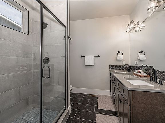 The primary suite is a true sanctuary, offering a serene retreat after a long day. The well-appointed bathroom showcases modern fixtures and luxurious touches, creating a spa-like ambiance.