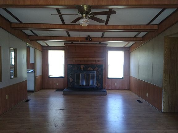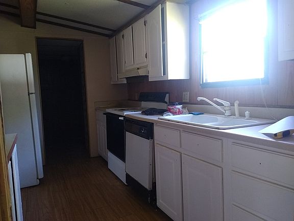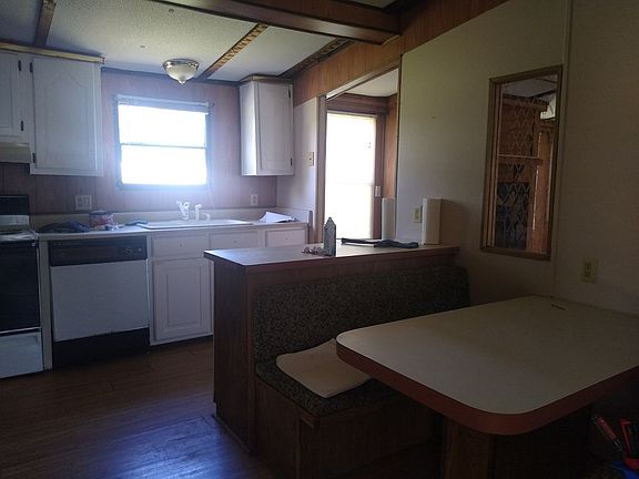 Close to the Echols County Elementary School. Peachstate 1985 26x53 Double Wide with half acre lot, front porch, and back porch. Laminate flooring in the living room, dining room and carpet in bedrooms. The living room has a wood-burning fireplace, laminate flooring, and cedar beams, open and spacious. The kitchen has a built-in table with a bench, white cabinets, and beige walls. The shop (9x8) building is in the back for storage. Large Magnolia tree in on the property. Metal Roof and AC works great.
