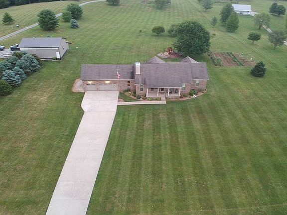 Here is a rare opportunity to own a luxurious home on 5 acres with no HOA! You couldn’t ask for a better location, country living just minutes from Toyota, Paris, or Lexington. Come see for yourself this deceivingly spacious 2,211 sq ft brick ranch sitting on an 1,800 sq ft finished basement, totaling 4,000 sq ft of living space. Some features of this meticulously kept home are its 3 bedrooms, 3 full bathrooms and 9 foot ceilings throughout. This home is built of solid brick and concrete construction including top of the line fiberglass windows which add to its efficiency. The oversized owner’s suit features a bathroom that has a large garden tub with jets, a large shower, two walk in closets, and cathedral ceilings. There is an abundance of storage throughout the home from the floored attic to the oversized closets. Enjoy the convenience of the built-in intercom/stereo system and central vac system. The kitchen has been newly remodeled with a custom-built island featuring 30 inch deep pull out drawers and granite countertops. There are two sets of staircases leading to the finished basement with a large recreation room, office/guest room, gun room, and full bath! When it comes to parking, storage, work shop, or even hosting parties this property has you covered with a 3 car attached garage and a 30ftx 40ft finished shop totaling 1,920 sq ft of additional climate controlled space. Access to the shop is separate from the home via a private drive. Enjoy your mornings on the spacious covered back deck watching the sunrise or your evenings watching the sunset on the covered front porch. When the weather turns cool you can warm your feet by the Buck wood burning stove. The large property with no restrictions provides you the freedom to park your RV, install a swimming pool, or build a livestock paddock you have always wanted. Take a walk or ride bikes and enjoy the quiet neighborhood, scenic views, and no through traffic. Please contact us at 859-327-7539 with question or to schedule a showing today! Recent updates and improvements: Remolded Kitchen Custom built kitchen island Tier three granite countertops Kitchen and entry room flooring Updated lighting Whole house water filter Marvin fiberglass replacement windows Gilkey sliding door Provia storm door New Buck wood burning stove, flue pipe, and chimney cap High efficiently mini split HVAC system in house garage Insulated steel high bay overhead garage doors with side shaft openers Secure gun room (located in basement) 30’ x 40’ x 12’ finished and insulated pole barn Dual fuel high efficiently gas furnace / heat pump HVAC system Plumed for compressed air Attached tool shed and lean-to Enlarged deck Rock landscaping Playset Large flag pole Established garden, fruit
