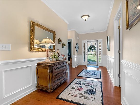 Welcome home to 120 Stone Cottage Dr in the beautiful golf course community of Brookstone Meadows. This one-level low maintenance home features 3 bedrooms and 2 full bathrooms. As you walk through the front door you are greeted by elegance. From the wainscot trim to the arched living room doorway, the hardwood floors, and stunning upgrades, this is your home sweet home! To your right you will find bedrooms two and three and the first full bathroom. Bedroom number two features a cathedral ceiling and is perfect as a bedroom or as an office or even a play room. The open living room also features a cathedral ceiling and a corner gas fireplace and flows into the newly remodeled kitchen. Abundant cabinet space and a pantry give you the storage you need. The dining room comfortably accommodates a table for 6 as well as room for a buffet or hutch. Enjoy your morning coffee in your cozy sunroom just off the living room. The master bedroom features a cathedral ceiling, sitting area and a walk-in closet. The newly remodeled master bathroom boasts a spacious walk-in shower, double sink, and linen closet. Enjoy outdoor living in your screened in porch. The laundry room accommodates a set of large capacity load washer and dryer and leads to the 2-car garage. The low maintenance yard features beautiful landscape lighting and an irrigation system. Enjoy all the amenities Brookstone Meadows has to offer including a pool and tennis courts. Take a golf cart ride to The Brook and grab a simple sandwich or enjoy fine dining. Golf club and clubhouse membership are separate. Don’t wait; this home won’t last long!