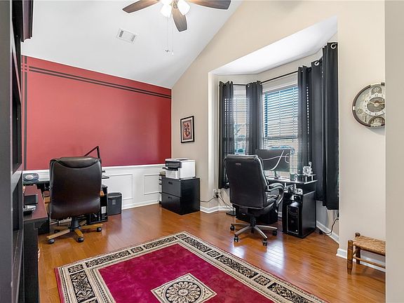 - Ceiling Fan(s), Cathedral Ceiling(s), Dual Sinks, Fireplace, High Ceilings, Bath in Primary Bedroom, Main Level Primary, Pull Down Attic Stairs, Sitting Area in Primary, Smooth Ceilings, Shower Only, Shutters, Solid Surface Counters, Walk-In Closet(s)