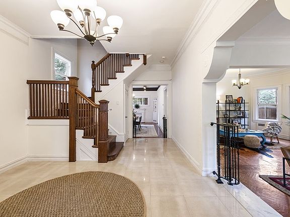 Extraordinary opportunity, exceptional value: A move-in condition Victorian gem brimming with modern upgrades in coveted Prospect Park South! This beautiful 1899-built single-family residence with a lush green front lawn, convenient driveway for your cars and lovely rear patio for outdoor pleasure is delightful and rare, nestled in one of Brooklyn's most desirable neighborhoods. Classic charm is reflected in its original details and gorgeous parquet floors, and complemented by stylish contemporary design and updates. Recent improvements to this turnkey 6 bedroom 3.5 bath beauty include fresh interior/exterior painting, iron work, updated plumbing and electric, a new boiler/boiler room with fireproof walls, new continuous hot water system, new closet systems and a tasteful restored staircase. A porcelain tile foyer welcomes you into the gracious, airy ambience. Adjacent to the foyer is an addition for an office and a half bath. At right, an open archway and marble steps lead to the sunken double parlor that accommodates seamless entertaining. A large light-filled living room with a decorative fireplace spills into the stunning formal dining room graced by an original coffered ceiling, wall of windows, decorative mantle and leaded glass. The sleek renovated kitchen is tailored to the chef with custom cherry cabinets, quartz countertops and island, cork flooring, tile backsplash, an exposed brick accent wall and Thermador & Jenn-Air stainless steel appliances. On the 2nd level sits the large sunny master bedroom with a walk-in closet, custom built-ins and spa-like en-suite bath, a second bedroom and elegant full bath. The 3rd floor provides additional comfort with 3 bedrooms and a full bath with a glass-enclosed shower. A security system is in place and transferrable to the new owner. The location is superb, near Prospect Park, plentiful shops and restaurants, and the B/Q trains to Manhattan.