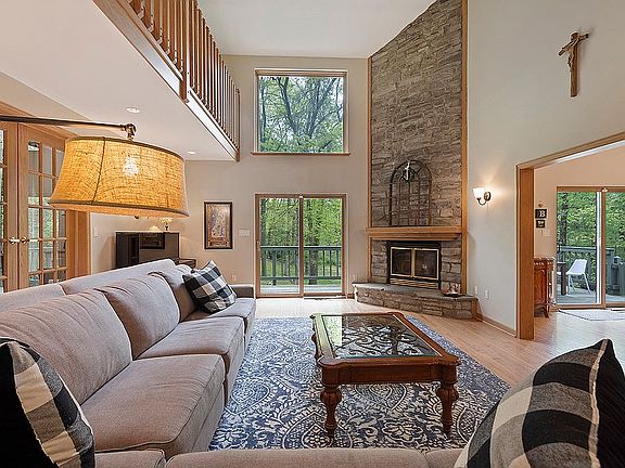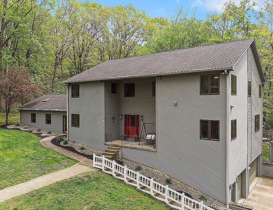 Nestled away on nearly 6.5 acres of captivating beauty is where you will find this extensively updated home that was seamlessly designed for today's living! This home combines architectural interest while submersing you in the natural wooded setting that surrounds it. Upon entry, this residence captivates you with the two story family room and the panoramic views of the landscape outdoors. For the entertainer, the dining room is spacious and airy with a view of the private pond. An expansive deck extends along the back of the property where you can enjoy the views of the trees and the pond. You'll be delighted by the recently updated Pottery Barn inspired kitchen with its crisp white cabinetry, large butcher block center island focal point, and endless counter space. The living room is noteworthy - an enormous space with a vaulted ceiling that is drenched in natural sunlight and can easily accommodate large gatherings or recreational activities. For added convenience, the first floor offers a spacious private den off the living room, a dreamy bedroom and an updated full bath. On the second level is where you will find the over-sized master suite complete with en-suite bath and a large walk-in closet. The second floor loft overlooks the family room and the secondary bedrooms and updated full bath can be found on the opposite side of the home to maintain privacy. The grand basement game room provides even more living space. This is an ideal spot for your home theater, gym, craft room, the possibilities are endless. After a long day, watching the sunset among the trees and over the pond will be a delight and is sure to impress the savvy buyer searching for refined luxury with a comfortable feel. Highlights include: A new roof (2012), well pump (2019), hot water tank (2020), HVAC (2014) 3 car garage, and a cement driveway. Premium location close to Zelienople, Cranberry Township, Route 19, I-79, PA Turnpike and Park & Ride