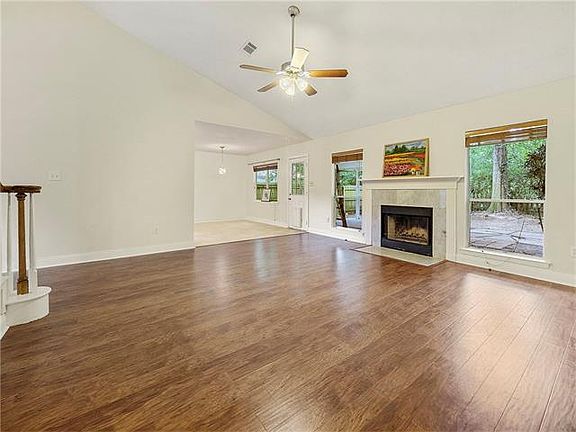 First time on the market! Just renovated! New floors! Fresh paint! New fixtures! Come see & make it yours! Huge master bedroom with two closets & updated bath downstairs! Precious powder room! Gas fireplace in the living room with soaring ceilings! Three large bedrooms with a shared bathroom upstairs. Large tree shaded & fenced backyard backs up to green space! Huge covered concrete patio! Wonderful neighborhood known for celebrating Halloween & other holidays! Community pool, tennis courts and clubhouse!