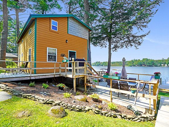 Beautifully renovated seasonal waterfront cottage offering some of the best views of Messalonskee Lake. This cottage sits on the eastern shore, which offers absolutely stunning sunsets. Messalonskee Lake is a body of water in the Belgrade Lakes region of Maine. Over the last several years this cottage has received many updates including a brand new master bedroom with private balcony deck. This cottage offers 3+ bedrooms, 2 bathrooms, multiple outside sitting areas, and a private shared dock. This cottage is part of an association with 418ft of wonderful shore frontage that includes a beach at the South and North end of the property.