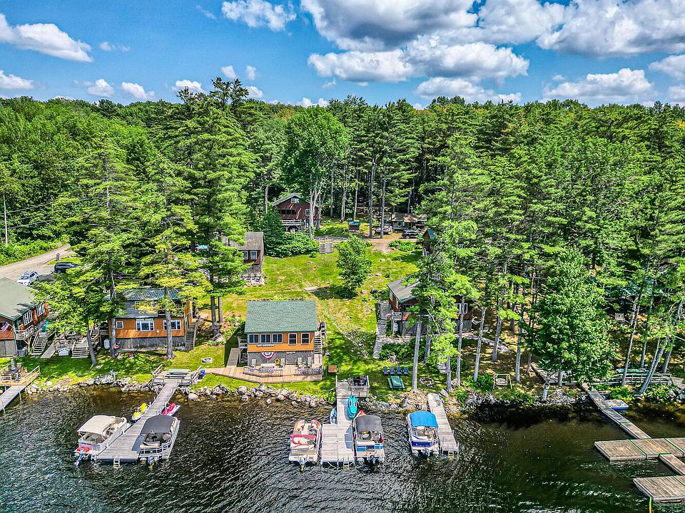 Maine Cottage that has it all and built new in 2008 .Two bedrooms and two baths with a sleeping loft that has four twin beds. The open concept living room -dining room- kitchen is spacious and inviting and you have 1084 square feet of heated space on this first floor and the loft is 213 square feet for 1297 total . The first floor primary bedroom has a private bath and over looks the lake as does the screened in porch that is 20.8 by 7.4 . Watch the eastern shore sunsets hat are amazing to behold. The other first floor bedroom and bath open onto the living room. The loft area is accessed off the main living area and also has a window to the water. A front porch, side porch and a deck at ground level that is 29.8 by 11.4. Parking is right outside the kitchen door and a boat slips is included with your purchase. Join this seasonal lakefront community with other owners who call this special place home for 26 weeks of the year The complex has 418 feet of shared waterfront, two sandy swimming areas, and a marina style dock with a boat slip of your own awaiting daily outings on the lake. One hundred dollars a month in association fees affords you and your family beach, boat slip, common picnic areas, parking, plus spectrum internet There are gradual entry for swimming and having fun on the water. This is a great chance to have that waterfront cottage for you and your family . You can also rent out your special place and derive income to lower your already low expenses. Seller is also available top help you earn rental income with on site support .A perfect spot to enjoy A great rental history is in place to review and plan your cottage future and vacation plans . This beautiful community has seasonal water and septic May-1st through November 1st. Come enjoy this waterfront community of other owners.. First time offered for sale and this is the sellers personal cottage available now for you to enjoy !