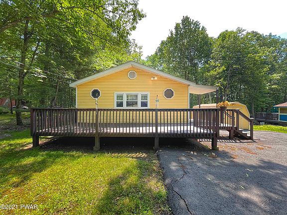 THE PERFECT COTTAGE IN THE FOREST. Look no further!! This cozy cottage has been completely updated. You'll love the newer roof,insulated windows, vinyl siding, large freshly painted deck, paveddriveway, and the matching utility shed. Come inside to a spacious foyer, welcoming, bright, and well laid out. Eat in Kitchen, living room withcathedral ceiling and beautiful oak wood flooring. The oak flooring flowsinto the separate dining room and continues into the master bedroom suiteand the nice size 2nd bedroom. There's an additional fully tiled bath anda laundry room with a front loading washer and dryer.
