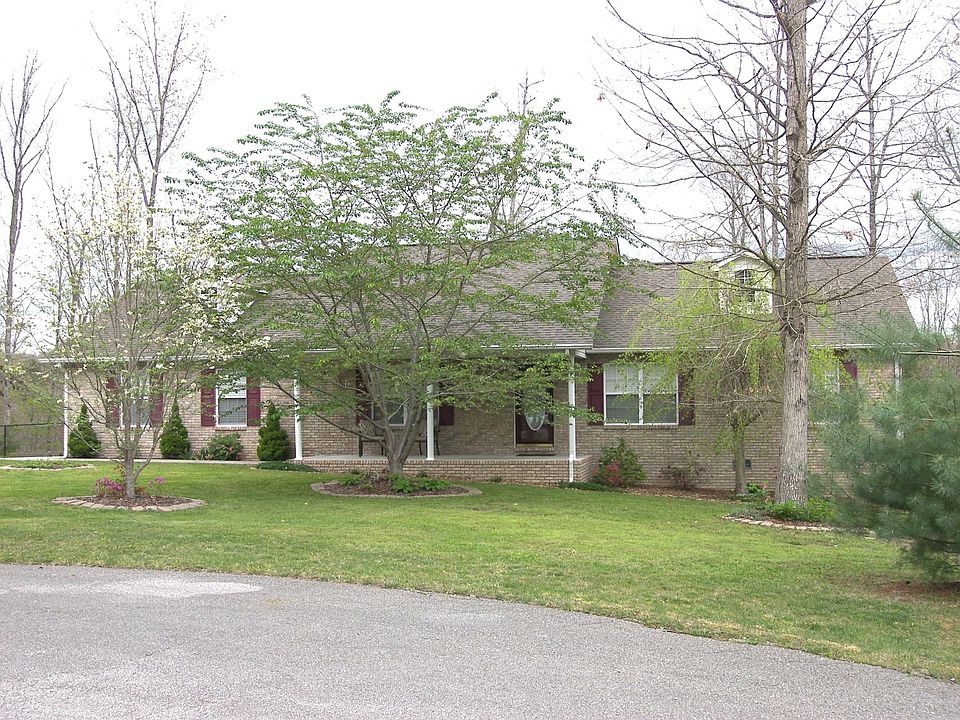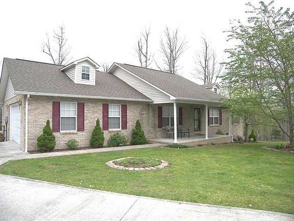 Views!! Views!! Overlooking the Bluff & Hear the stream on this 5.36 AC, Located at the end of the Cul-De-Sac in the Beautiful Setting of the Sunset Ridge Subdivision. This home, most all brick, features the open, split BD plan, Huge open kitchen w/ lots of cabinets, island cabinet, snack bar, eat-in kit. FRML din., Lg. GRT RM w/ Nat'l gas Brick F/P. You will enjoy sitting on the country Front Porch or on the 36'covered back deck watching the wildlife as they roam over the Bluffs. This 3BD/2.5BA offers you some trey ceilings as well as vaulted. The upgrading has been done for you. Features nice laminate floors, except for utility & bathrooms. The back lawn has been fenced in for your pet. This is a must see!!