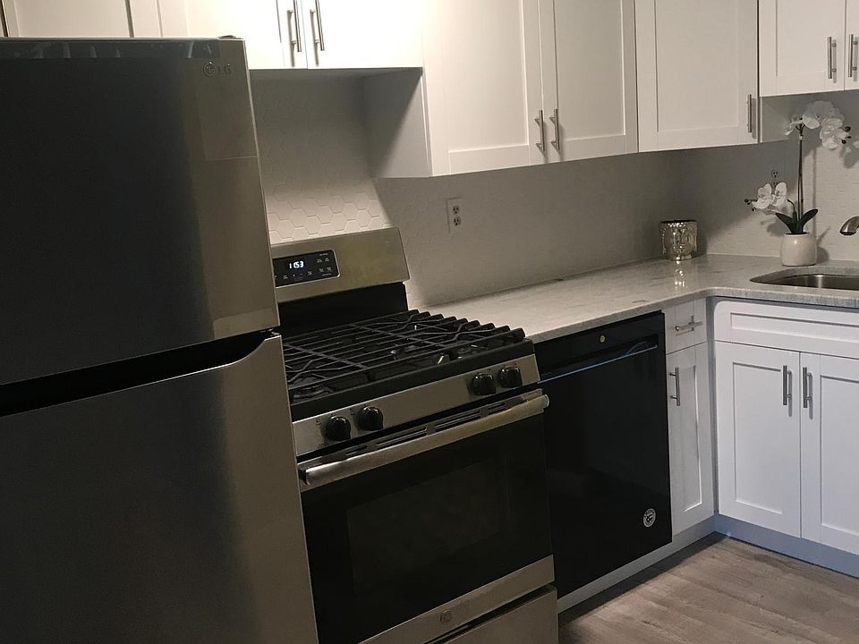 This is a newly renovated 2 bedroom, 2 bathroom apartment steps away from Main Street in bustling downtown Hackensack. Includes a master bedroom with master bath. 2nd bedroom is smaller and would make for a great nursery or office. Apartment has all new stainless steel appliances and a balcony. Located around the corner from both NJ Transit train AND bus stops for an easy commute to Manhattan. The first floor of the building conveniently features a laundry room and bike storage. Unit comes with one free parking spot included with rent. 1 and a 1/2 month's rent along with 1 month security deposit due at signing. NO BROKER FEE. We love pets, but unfortunately the building does not allow. Tenant pays gas and electric. Water is included in rent. Building does not allow pets. No broker fee. One covered parking spot included with rent.