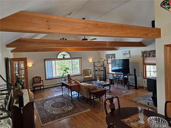 Country living minutes from Rt. 146/395/290 and Mass Pike. Enjoy the tranquility of a spacious, fenced back yard; hot tub and large deck overlooking the Douglas State Forest. This very well maintained ranch house sits 150+ ft. off the road, with a spacious 2 car attached garage, eat in kitchen, hardwood floors, 30x22 oversized family room with cathedral ceilings, exposed beams, and wood stove; great for entertaining! High efficiency windows, mini-split installed Dec 2022, central air, leaf filter gutter guards, partially finished basement with large storage area, generator hook-up, top of the line HVAC system, storage shed, with private well and septic. Located close to Webster Lake boat ramp and public beach.