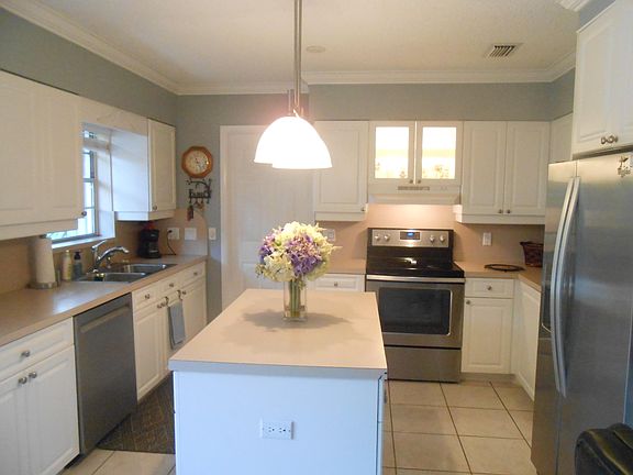 Roof replaced in 2022, beautiful maintained and pampered home, Island Kitchen with SS appliances and loads of storage. Crown molding, ceramic tile and laminated flooring, huge fenced in backyard, circular driveway, accordion shutters, a/c replaced in 2018, no Hoa, close to everything, water heater and dishwasher replaced in 2023, mature fruit trees.