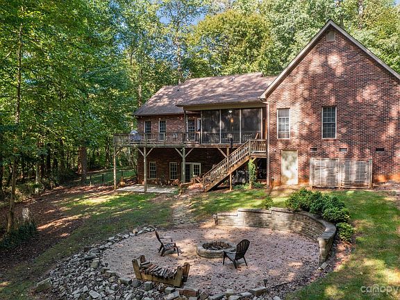Gorgeous brick home on almost an acre of wooded land. This lovely home sits on a beautiful piece of property with trees all around. Fantastic outdoor spaces that are great for entertaining which include a covered front porch, screened in porch on the back, huge deck, firepit and patio underneath the deck. On the main level there is a formal dining, great room with fireplace, kitchen with breakfast area, 2 secondary bedrooms, guest bathroom, the primary bedroom and bathroom, laundry room and 1/2 bathroom. Upstairs has a large bonus room with 3 storage closets and 2 regular closets. Basement features a bar with room for 4 bar stools, a TV sitting room, recreation room, guest bedroom and full bathroom. New granite and new flooring in kitchen, great room and dining. Fenced in back yard with a storage building and a carport to store lake equipment or another car. Part of the basement has a walk in crawl space with full size door. This home offers a rural feel, but not too far out.